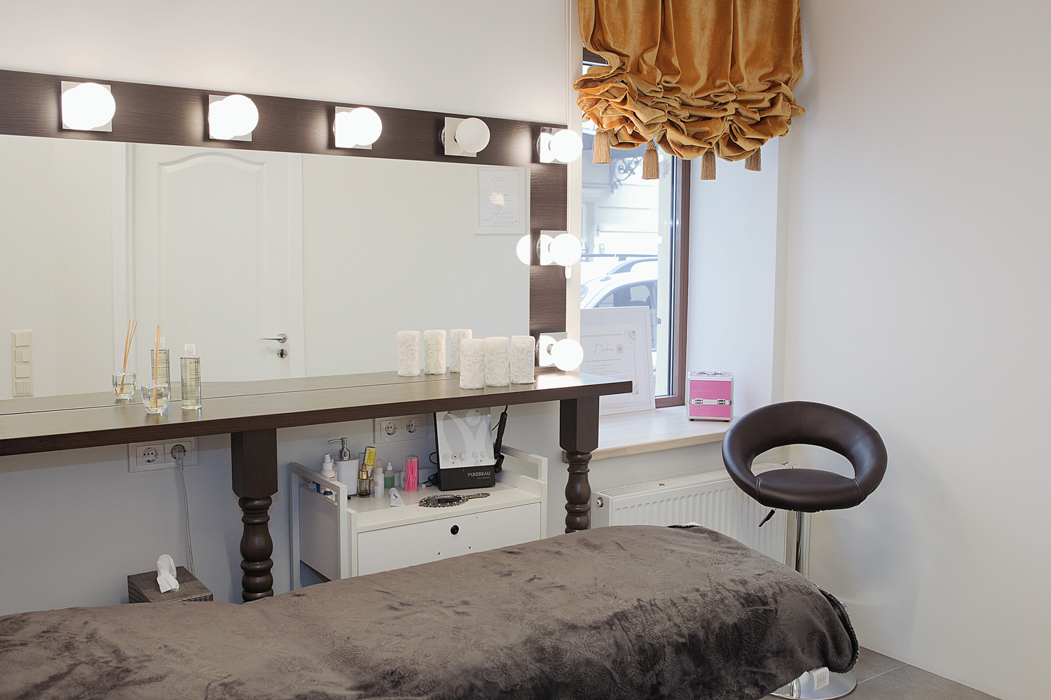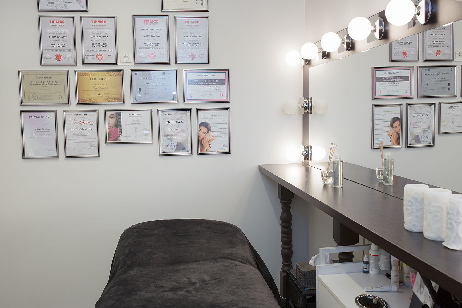 Studio LB grožio studijos interjero fotografavimas. Prekės ženklo paslaugų įvaizdinė verslo fotosesija. Makiažo mokymų įvaizdinė fotosesija.